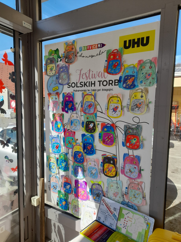Na podružnici smo se odzvali povabilu na prav poseben festival – 3. festival šolskih torb in tako pomagali pri nastanku unikatne izložbe poslovalnice Office&More v Šentjurju. Naši najmlajši učenci so v podaljšanem bivanju pobarvali svojo unikatno šolsko torbo, ki že krasijo vetrolov trgovine. Mladi umetniki so se razveselili nagradne lizike in kupončka ugodnosti.