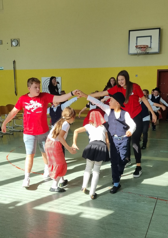 V četrtek, 28. septembra 2023, nas je obiskala skupina učencev in učiteljev iz srbske Požege. Pogostili smo jih z domačimi lokalnimi dobrotami ter jim pripravili kratek, a zanimiv sprejem. Po zvenu šolske himne, so jim tretješolci ob spremljavi harmonike predstavili slovenske ljudske pesmi in plese. Mladi nadobudni plesalci so povabili medse tudi otroke iz Požege. Gostom smo predstavili šolo in naš šolski sistem. Navdušeni so bili nad prijaznostjo in gostoljubnostjo naših učencev ter učiteljic.