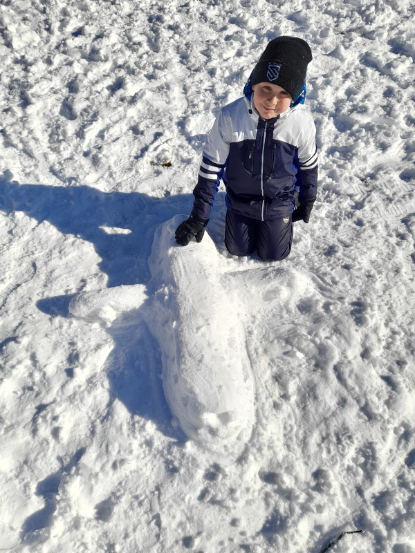 Končno so ga dočakali! Sneg, seveda! V torek smo ga tudi v dopoldanskem času zunaj dodobra pregneti in steptali. 1., 2. in 4. razred se je namreč odpravil na gozdno jaso, ker so nastale prave snežne umetnije. Z rdečimi lički ter z nasmehi na ustnicah smo se vrnili v razrede.