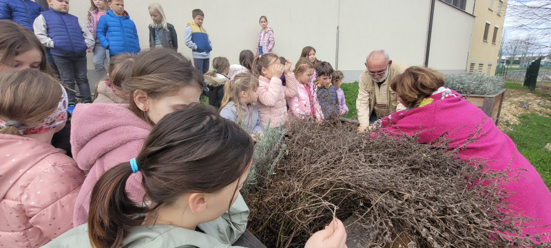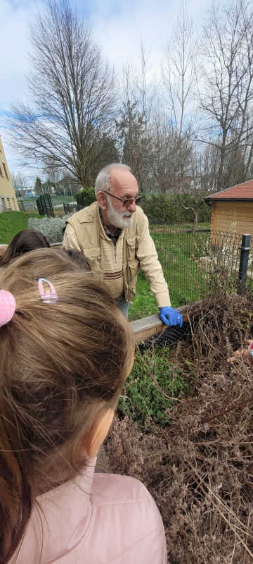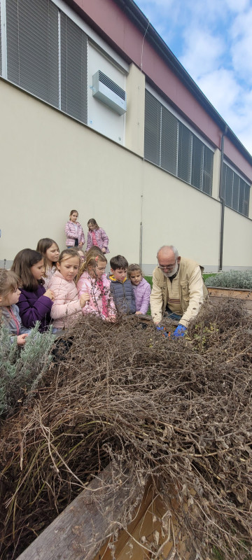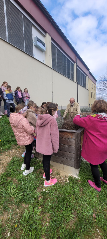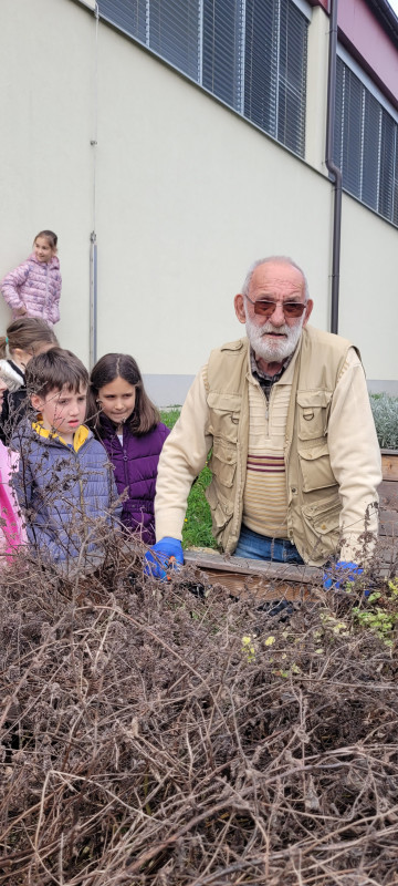 Učenci OPB smo se razveselili obiska vrhunskega vrtnarja, gospoda Draga Jančiča. Vrtnar nam je v uvodu predstavil delo vrtnarja in šolanje za ta poklic. Na šolskih visokih gredah, kjer imamo zasajena zdravilna zelišča, nam je pokazal, kako se jih obrezuje. Svetoval nam je, kaj lahko v bodoče še zasadimo na grede.