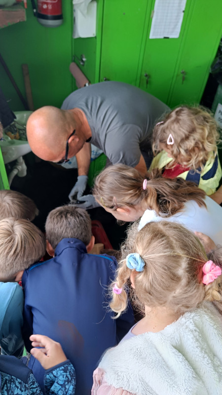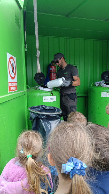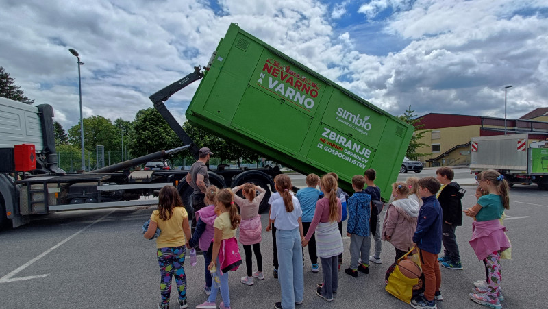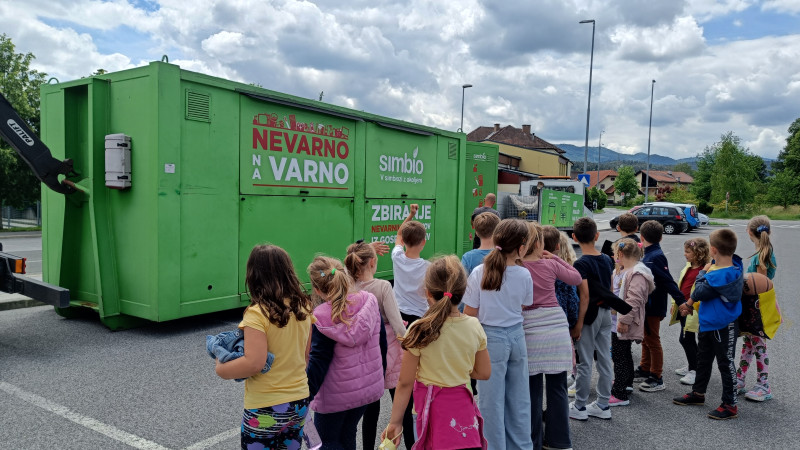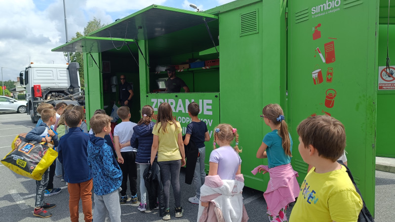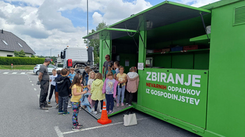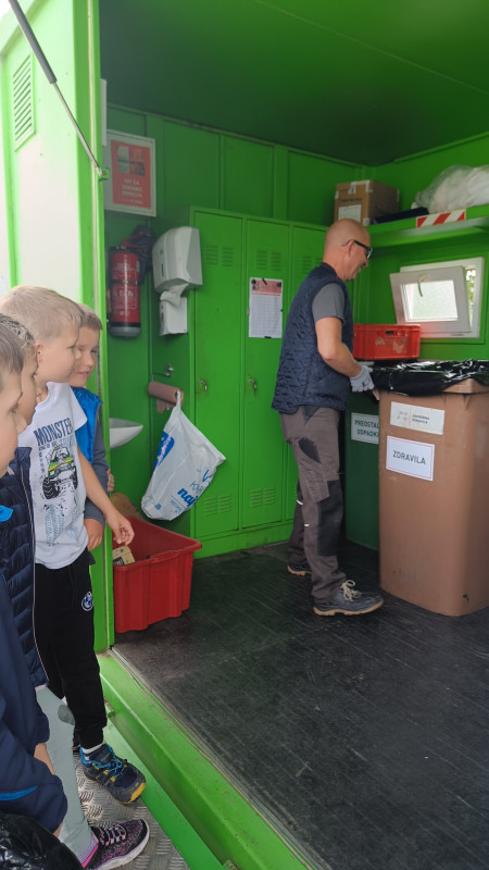 Tokrat pa smo si imeli priložnost v živo ogledati kontejner za zbiranje nevarnih odpadkov. Prijazna uslužbenca sta nam povedala marsikaj zanimivega. Skupaj smo tudi pregledali odpadke, ki so jih prinesli vaščani in jih primerno razvrstili v zabojnike. Ogledali smo si še zabojnike ekološkega otoka in opazovali, kako jih s pomočjo dvigala in kamionov s kontejnerji spraznjujejo. Poskrbimo za naš planet vsak dan, ko odvržemo smeti! Premislimo, kam sodijo in nevarne odpadke shranjujmo do prihoda zabojnikov, ki so v naselju pri šoli dvakrat letno.