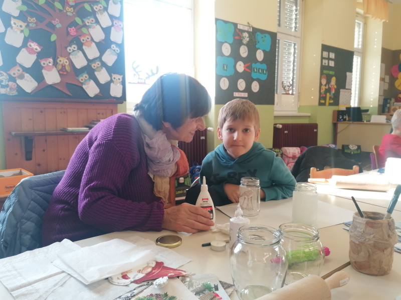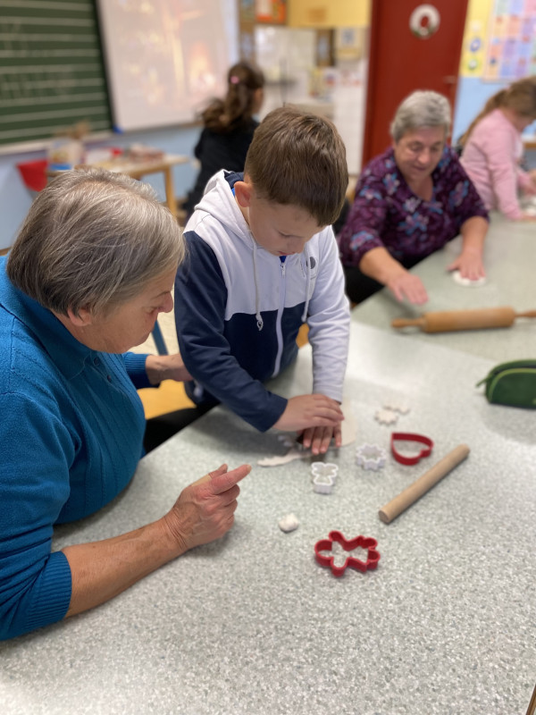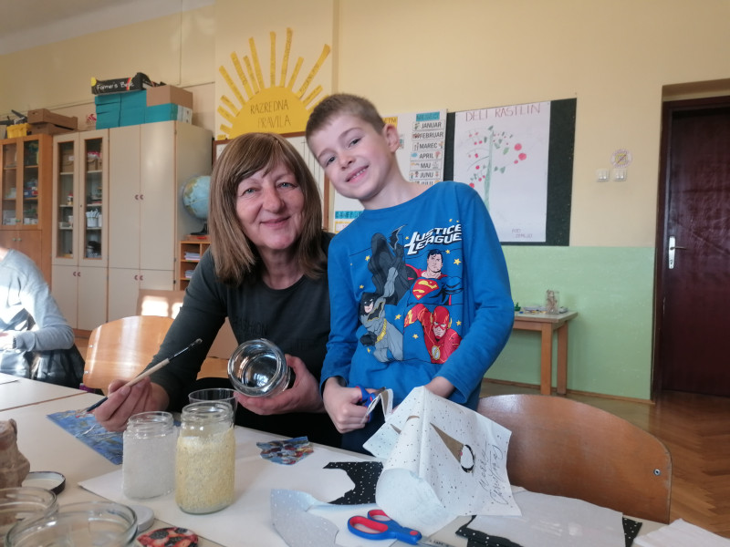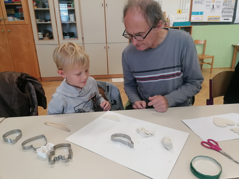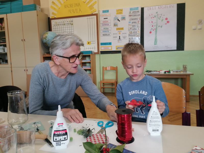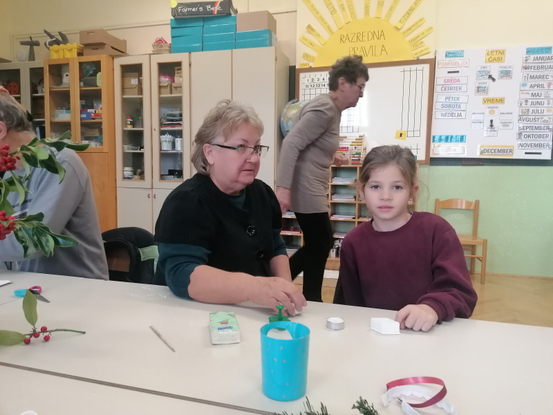 V petek, 6.12. je bil za nas poseben dan, saj sta nas ponoči obiskala Miklavž in parkelj ter nam nastavila majhno presenečenje. Največje darilo pa so bili za nas babice in dedki, s katerimi smo preživeli čudovito ustvarjalno dopoldne. Po nekaj letih so zopet sedli v šolske klopi in skupaj z nami ustvarjali praznične izdelke za šolski bazar. Na koncu pa smo se posladkali z vedno najboljšimi babičinimi piškoti.