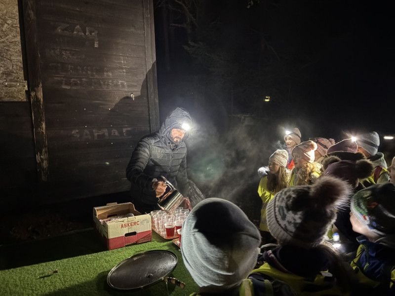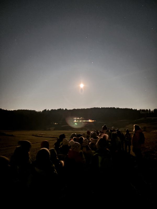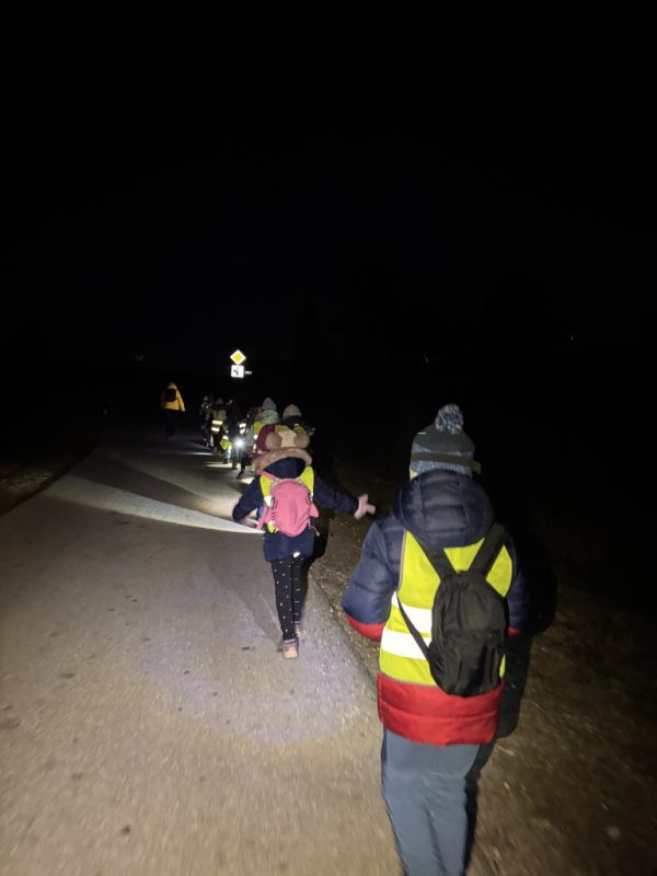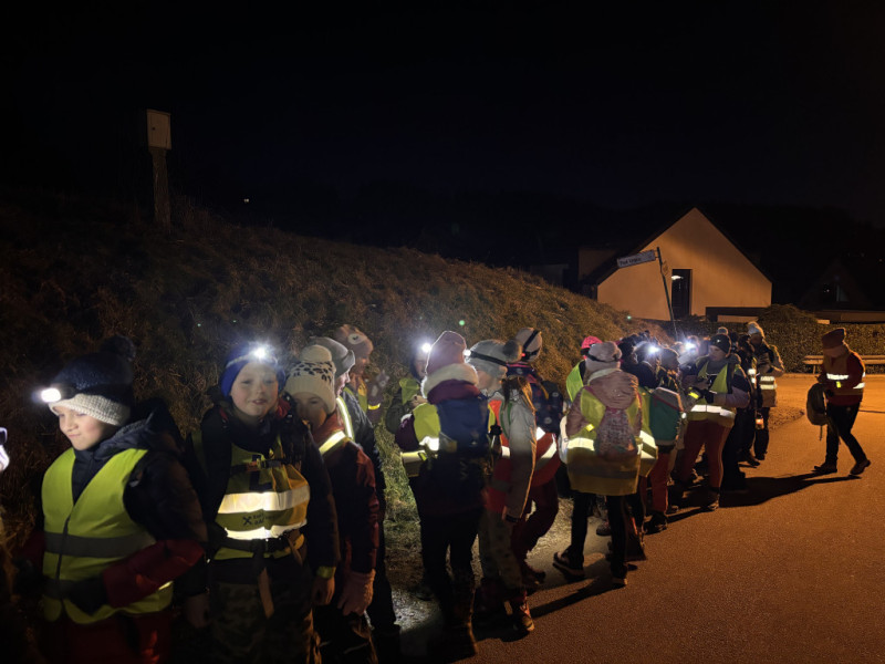 V torek, 14. januarja 2025, smo se učiteljice in mentorice planinskega krožka skupaj z učenci OŠ Franja Malgaja in podružnice Blagovna odpravile na nočni pohod po obronkih Šentjurja. Kar 38 učencev je s svetilkami, odsevnimi brezrokavniki in kresničkami raziskovalo okolico Šentjurja. Ves čas našega pohoda nas je spremljala skrivnostna Luna. Ob poti pa nismo opazovali le zvezd, temveč tudi planete, ki so se čudovito svetlikali na zimskem nebu.