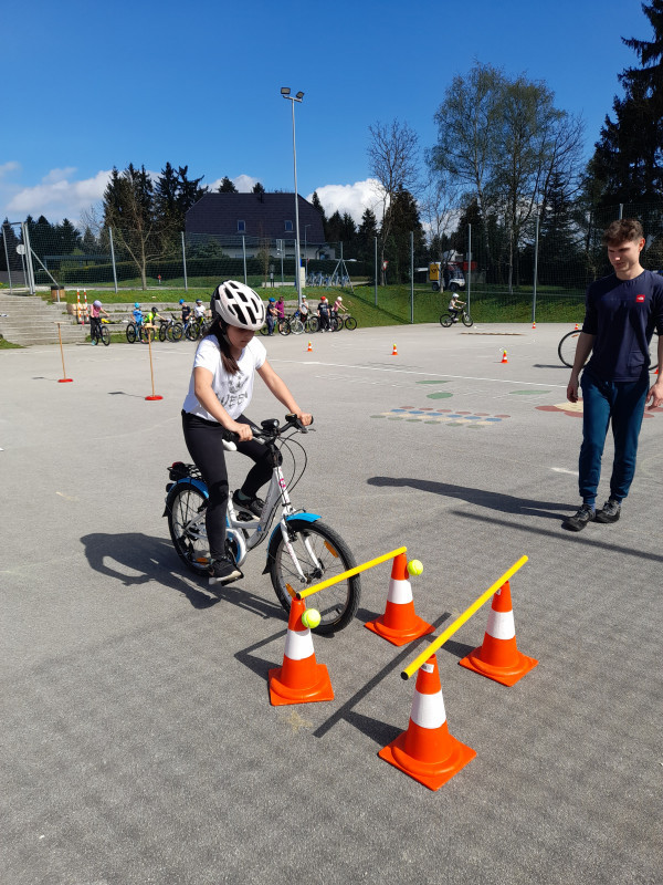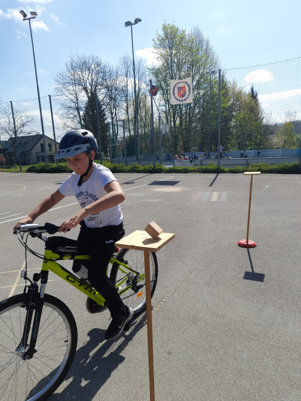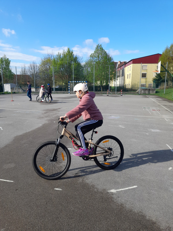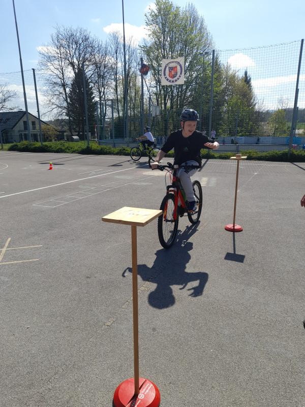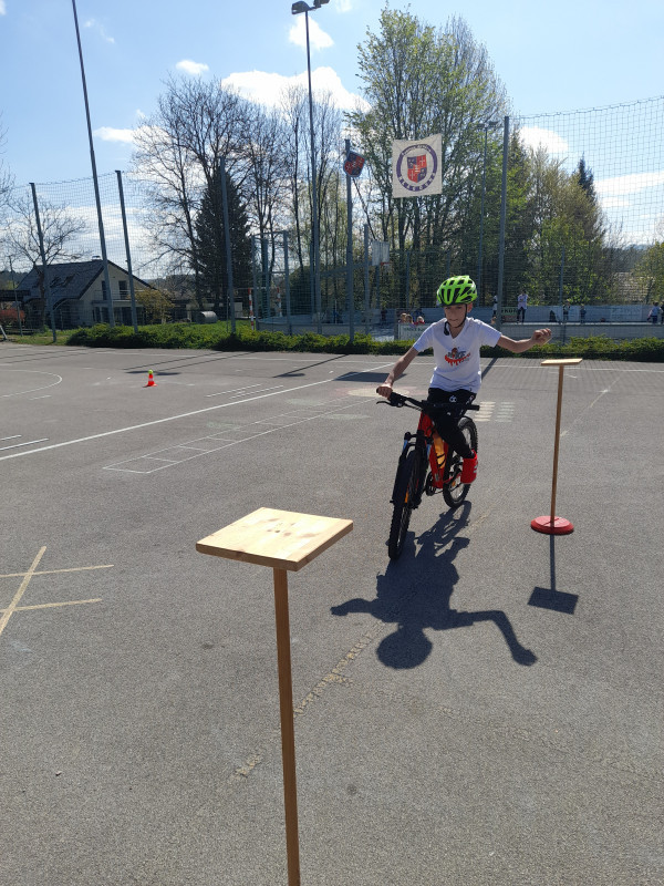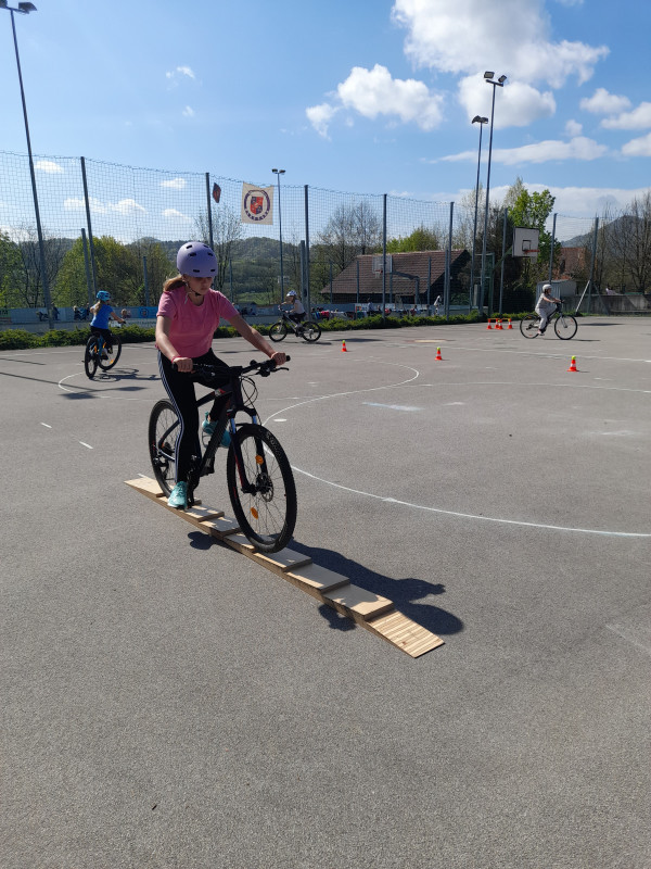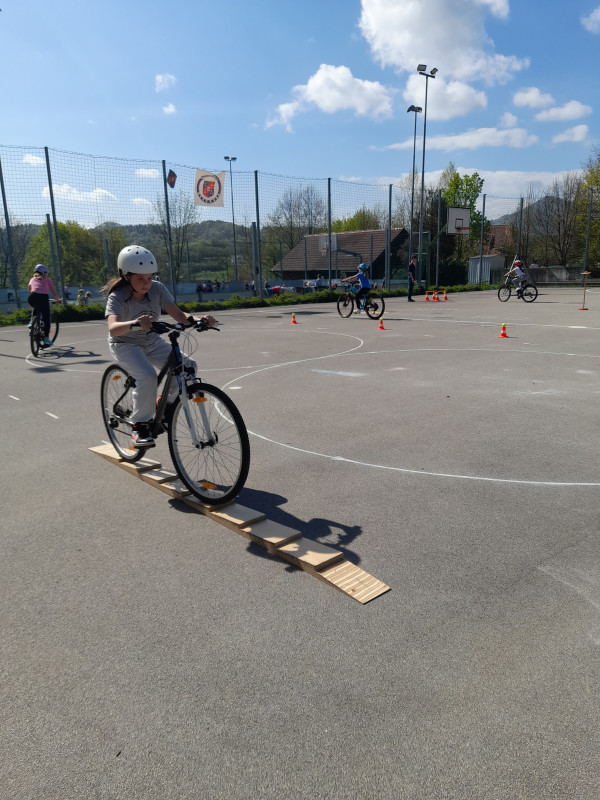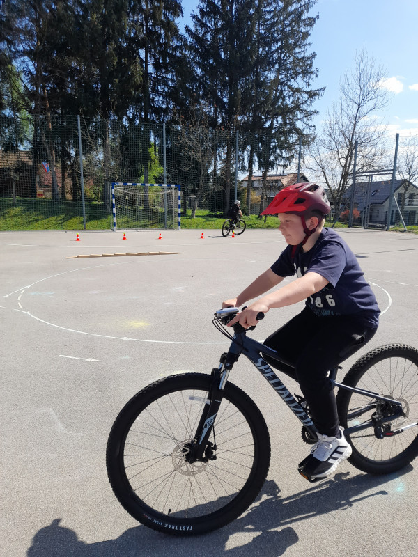 Naši petošolci so danes prvič skupaj sedli na kolo. Po urah preživetih v računalniški učilnici, kjer so poslušali in se urili o cestno prometnih pravilih, ki veljajo za vožnjo s kolesom ter seveda po opravljenem teoretičnem izpitu, so se preizkusili v vožnji skozi ovire. Obvladovanje le-teh jim lahko pride zelo prav tudi kasneje na prometnih površinah.