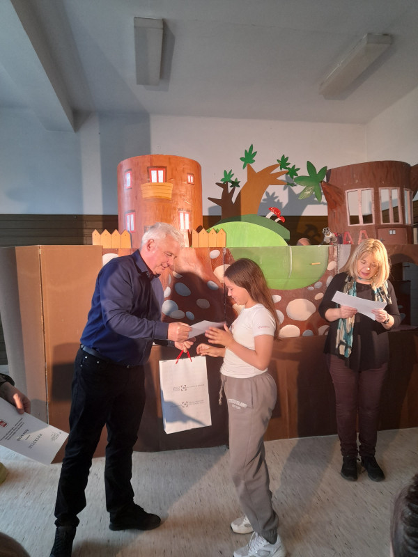 V četrtek, 8. 5. 2025, je na izpostavi URSZR Celje potekala zaključna prireditev regijskega natečaja “Naravne in druge nesreče – bodi pripravljen, bodi varen«. Strokovna komisija je izbrala najboljše likovne izdelke. Med njimi so štirje, ki so jih ustvarili naši učenci in so se posledično uvrstili na državno tekmovanje.