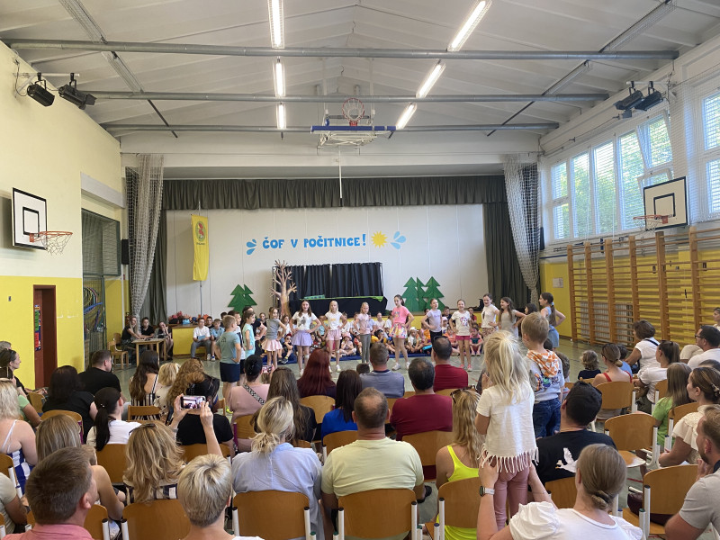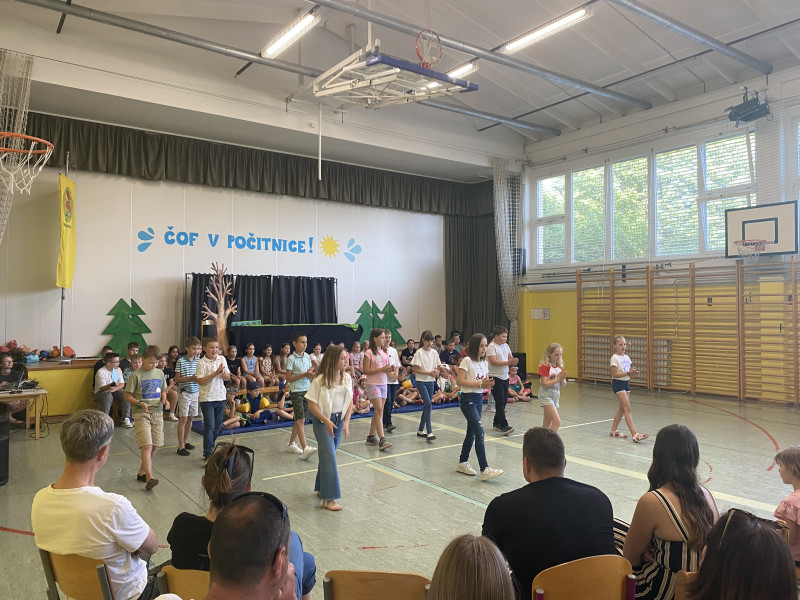 V uvodnem delu programa v šolski telovadnici so tretješolci obiskovalcem pokazali kavbojski ples. Prvo- in drugošolci, pripravljeni na počitniške dni z rekviziti za na plažo, so ob spremljavi pesmi »Mi gremo pa na morje« zaplesali in ogreli vzdušje. Nato so nas četrtošolci popeljali v hribe in s Kekčevo pesmijo priklicali pogum in igrivost junakov iz slovenskih gora.