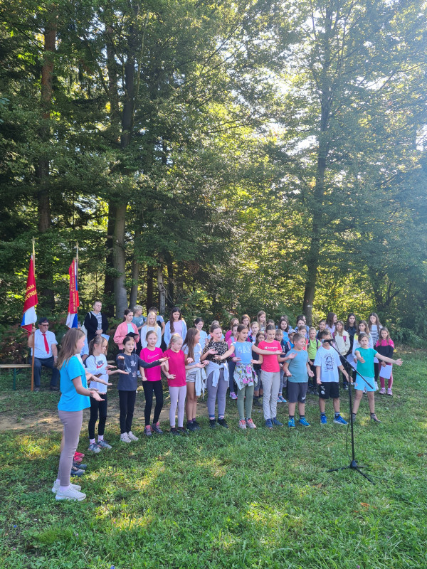 Na obrobju gozda smo se zbrali učenci naslednjih OŠ: OŠ Dramlje, OŠ Ljubečna in naše šole, POŠ Blagovna. V programu, ki sta ga organizirala Združenje borcev za vrednote NOB Šentjur in Združenje borcev za vrednote NOB Celje, smo sodelovale vse prisotne šole in ostali govorci. Naši petošolci so ob spremljavi in mentorstvom učiteljice glasbene umetnosti, Reneje Sare Centrih Kačičnik, nastopili z dvema pevskima točkama.