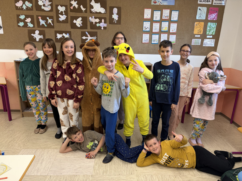 Na naši podružnici smo v petek, 6. marca 2026, preživeli prav poseben dan – Evropski dan pižam, ki ga obeležujemo v okviru meseca ozaveščanja o spanju po vsej Evropi. Šola je za en dan postala mehka, pisana in udobna, saj so učenci in učiteljice prišli kar v svojih najljubših pižamah.