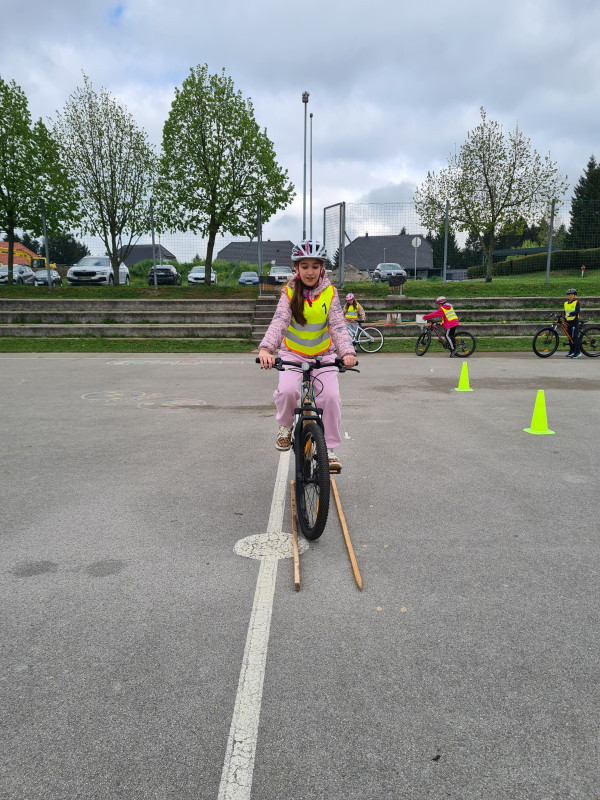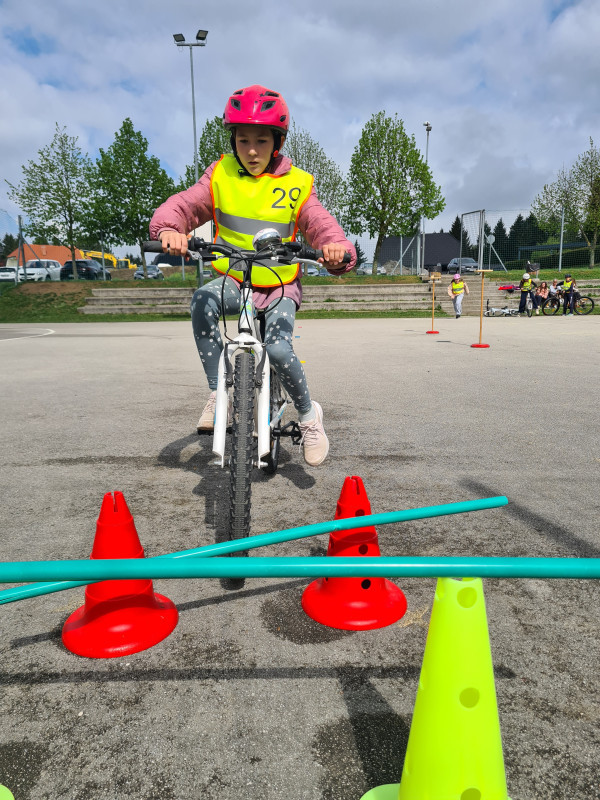 Mladi nadobudni kolesarji so večkrat prevozili poligon in pri tem urili ravnotežje, natančnost ter spretnost vožnje s kolesom. Obiskal nas je tudi policist, ki nam je predstavil pomen varnosti v prometu. Poudaril je, kako pomembno je nošenje čelade, dobre kolesarske spretnosti ter dejstvo, da je promet pogosto nepredvidljiv. Posebej je izpostavil, da so kolesarji med najbolj ranljivimi udeleženci v prometu, zato moramo biti vozniki nanje še posebej pozorni.