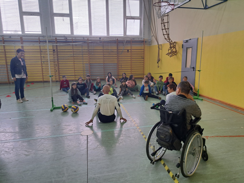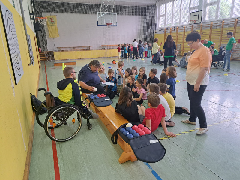 Na naši šoli je v sredo posijalo prav posebno sonce. Gostili smo namreč predstavnike Zveze Sonček iz Celja (zveza društev za cerebralno paralizo) ter njihove varovance. Predstavili so nam športe, ki so prilagojeni invalidom: odbojko sede, baskin in boccio. Učenci so pri športnih aktivnostih aktivno in z zanimanjem sodelovali. Nekaj svojih spretnosti pa so preizkusili še na poligonu za slepe.