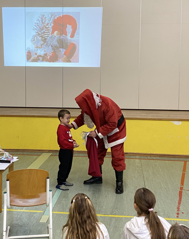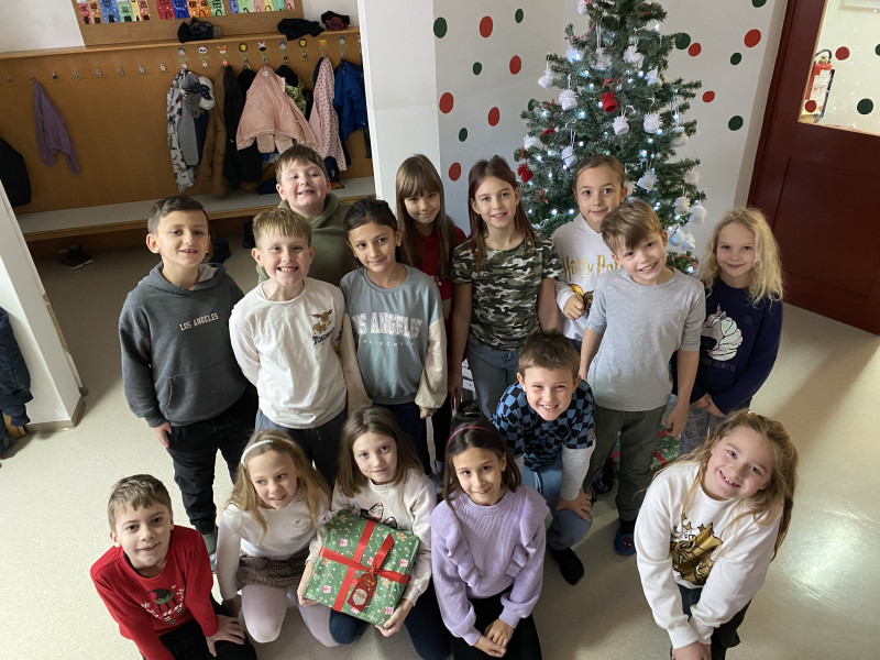Pevski zbor pa nas je s praznično božično pesmijo popeljal vse do težko pričakovanega presenečenja. Obiskal nas je Božiček, ki nam je poleg sladkarij, pod praznično okrašeno smrečico pustil še darila. Tako je skupaj v sodelovanju s KS Blagovna tudi letos pričaral nasmeh na obraz našim otrokom ter z didaktičnimi igračami popestril razredne igralne kotičke.